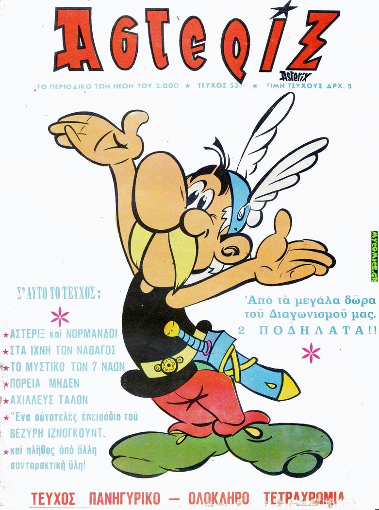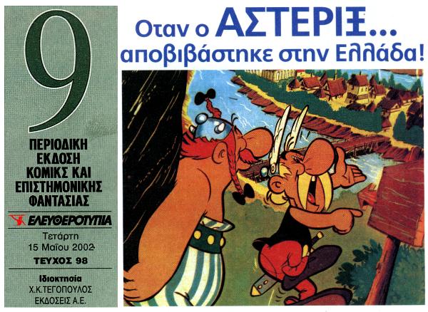 | Στο ένθετο περιοδικό για τα κόμικς "Εννέα" η εφημερίδα ΕΛΕΥΘΕΡΟΤΥΠΙΑ έχει αφιέρωμα για τίς πρώτες ελληνικές εκδόσεις του Αστερίξ ( "ΕΝΝΕΑ" #98, 15 Μαίου 2002 ) |