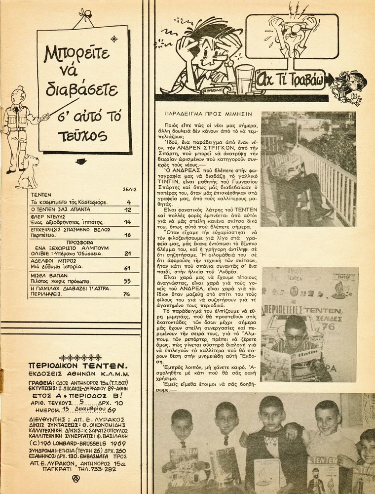 Τεν Φωτοπεριπέτειες. Δεκαπενθήμερη έκδοση, 1969. 24 συνολικά τεύχη Tin Tin Photo Stories. Bi Weekly edition. Including a full BD Story. 1969, 24 issues total |