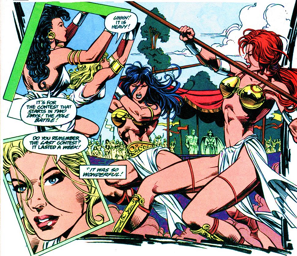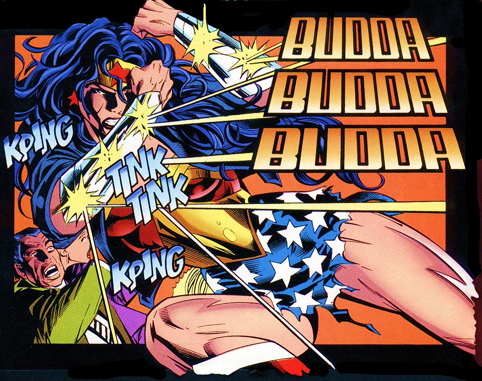 | Η Γυναίκα Θαύμα (Wonder Woman) ποτέ δεν υπήρξε στην Ελλάδα ιδιαίτερα γνωστή. Είναι η Ντιάνα, κόρη της Ιππολύτης κια είναι η μοναδική απο τίς Αμαζόνες που ζεί σαν αντιπρόσωπός τους στον κόσμο μας. Παρ'όλο που έχει μακρά παρουσία στα DC comics οι περιπέτειες της μάλλον δεν είχαν τίποτα το ιδιαίτερο να δείξουν και να πούν εκτός απο την όμορφη παρουσία της. Τρομερή αναλαμπή τα οκτώ τεύχη απο το #93 έωςτο #100 (με το τεύχος #0 ενδιαμέσως) απο τούς Loebs - Deodato με θέμα μία από τίς καλύτερες ιστορίες στα κόμικς όλων των εποχών. "Η Πρόκληση της Άρτεμις" (Challenge of Artemis) πραγματικά δίνει στον μύθο της Wonder Woman τη χαμένη της αίγλη έστω για λίγο και πραγματικά αξίζει κανείς να βρεί και να διαβάσει αυτά τα τεύχη. Τα τελευταία χρόνια μόνο γίνεται κάποια σοβαρή προσπάθεια και αξίζει κανείς να διαβάζει τα Wonder Woman comics. |