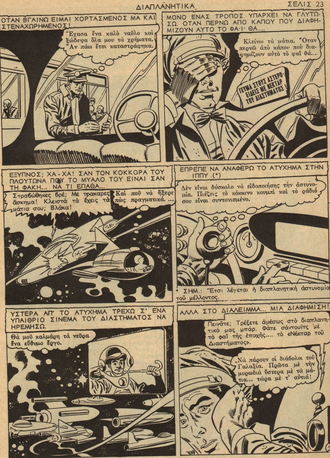"Ταξιτζή του Διαστήματος". Δημοσιεύτηκε στα Διαπλανητικά